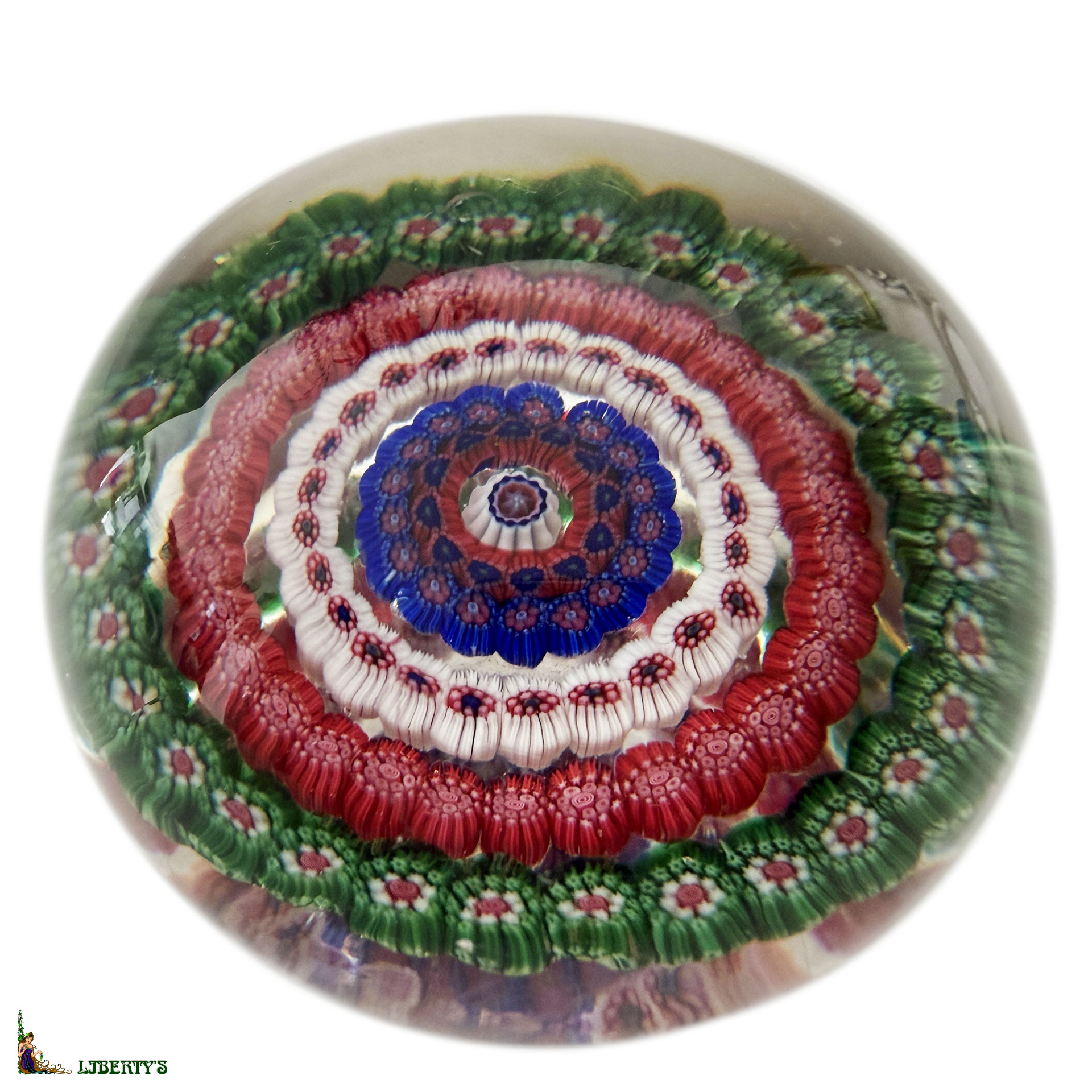 Baccarat paperweight with four concentric circles of millefiori, 2-1/8 in. diam.