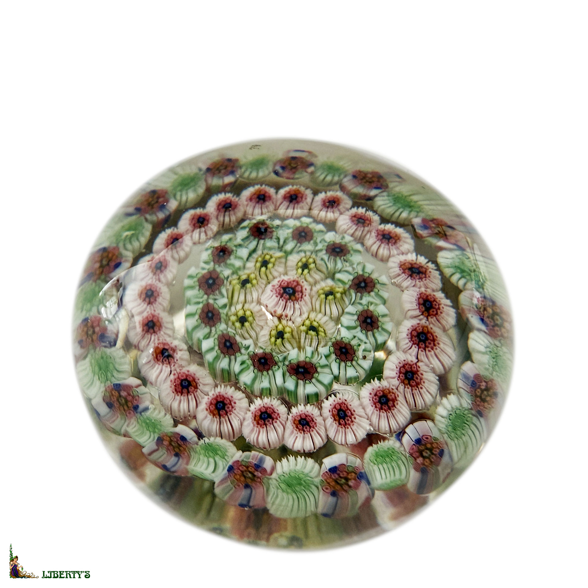 Baccarat paperweight with four concentric circles of millefiori, 2-1/8 in. diam.